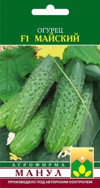 Популярный урожайный скороспелый пчелоопыляемый гибрид,Предназначен для выращивания в весенних теплицах и тоннелях, а южнее — и в открытом грунте. Ветвление среднее. Зеленцы бугорчатые, белошипые, длиной 12-17 см, салатно-консервного назначения, очень вкусные, хрустящие. Частота расположения бугорков средняя, бугорки крупные. Гибрид устойчив к вирусу обыкновенной огуречной мозаики, относительно — к корневой гнили. К F1 Майский добавляют 10 % опылителя. Плотность посадки в защищенном грунте 2,5-3 раст./м2, в открытом грунте 4-5 раст./м2.