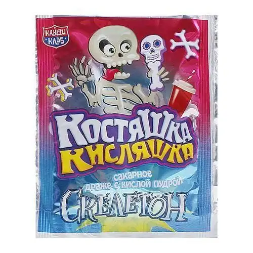 это забавное и вкусное лакомство, которое понравится как детям, так и взрослым. Эти ароматные конфеты в виде косточек с кислой пудрой порадуют вас тремя любимыми вкусами: колой, клубникой и виноградом. Каждая косточка упакована в индивидуальную обертку, что делает их удобными для перекуса в дороге, в школе, детском саду или на прогулке.