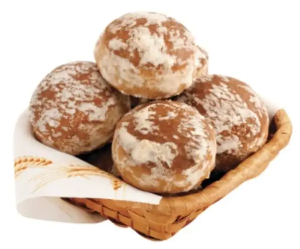 Пряники круглой формы с добавлением арахиса, покрытые сахарной глазурью.