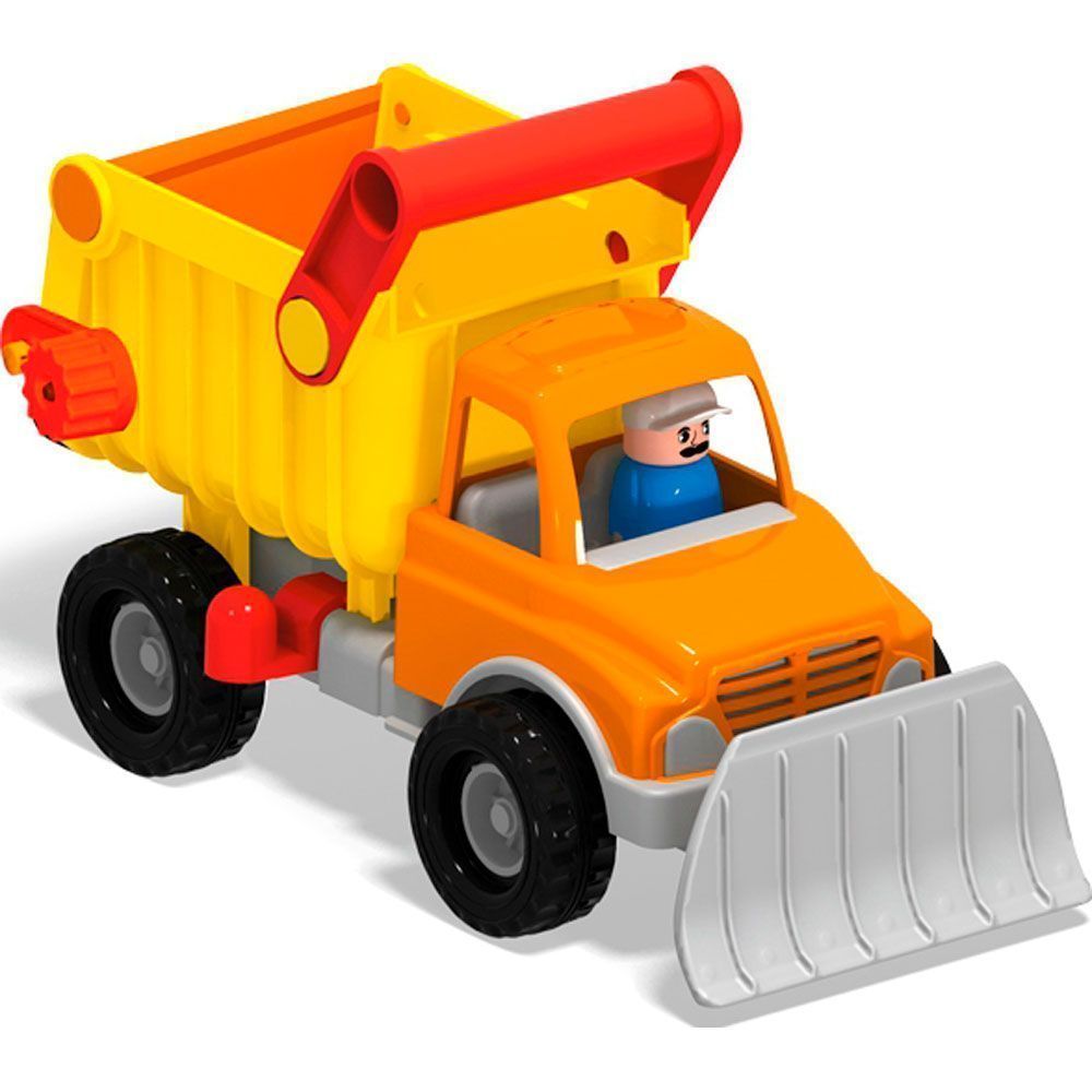 Ваш ребенок любит автомобили и специальная техника вызывает у него восхищение?Тогда наш грузовик с отвалом станет настоящим украшением игрушечного автопарка и любимым спутником во время прогулок!Несомненный плюс нашей специализированной машины — возможность использования ее для игр в любое время года!Зимой при помощи широкого отвала можно расчистить от снега дорогу, а летом в песочнице проложить новые тропы или даже возвести песочные горы.Большие прорезиненные колеса автомобиля гарантируют проезд по любому бездорожью. В поднимающийся кузов с открывающимся задним бортом можно загружать снег или песок и перевозить его на нужное расстояние.Игрушка выполнена из прочного высококачественного пластика и несомненно будет радовать вашего ребенка очень долгий период.