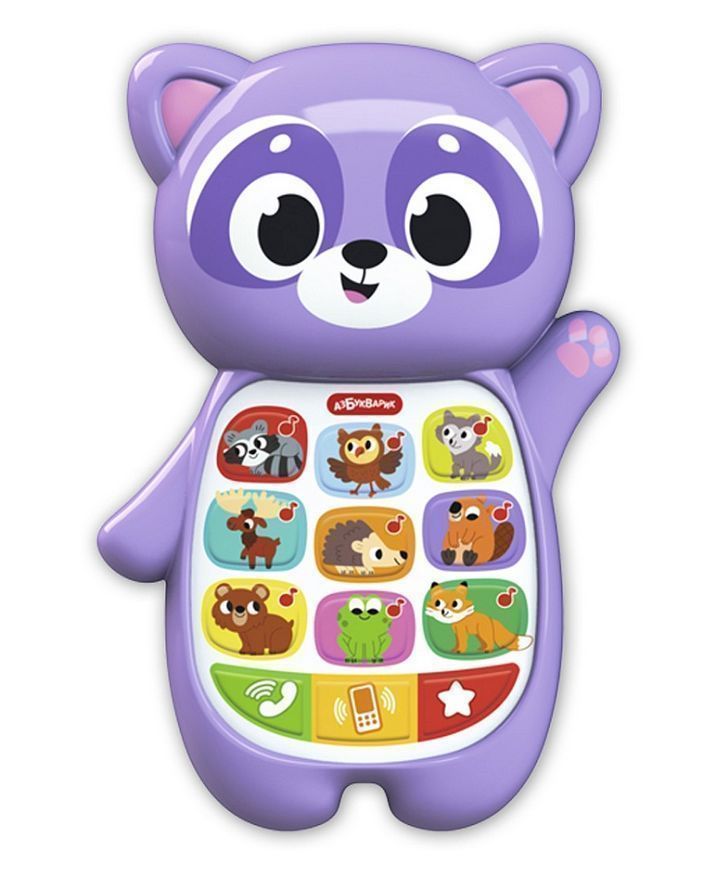 Необычный музыкальный смартфончик для малыша – в виде забавного Енотика! Нажимая на кнопочки-иконки, ребенок послушает песенки про лесных зверят, модные рингтоны и сможет поиграть в две увлекательные игры: Игра «Весёлый телефончик» – малыш сможет звонить Енотику и его друзьям, и зверюшки ответят ему. Игра «Загадайка» – ребенок будет отгадывать загадки и угадывать голоса зверят.