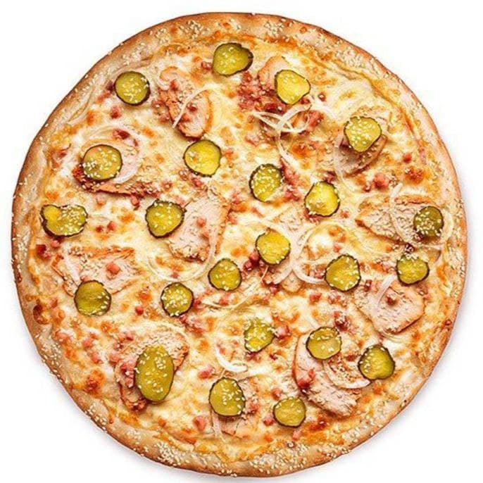 Состав: укроп, окорочка куриные, огурцы сол.консерв, перец, помидоры, сырный продукт мука пшеничная в/с, вода питьевая, сахар, маргарин, дрожжи прессов. ""Рекорд"", соус томатный, соль, мажимикс. Пищевая ценность в 100 г продукта: Жиры: 18,36 г, Белки: 49,9 г, Углеводы: 18,2 г, Калорийность: 437,64 ккал.