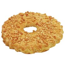 Состав: яйцо, вода питьевая, масло растительное, мука пшеничная в/с, маргарин, сахар, арахис, кефир, ванилин, разрыхлитель. Пищевая ценность в 100 г продукта: Жиры: 17,5 г, Белки: 4,3 г, Углеводы: 67,5 г, Калорийность: 444,7 ккал.