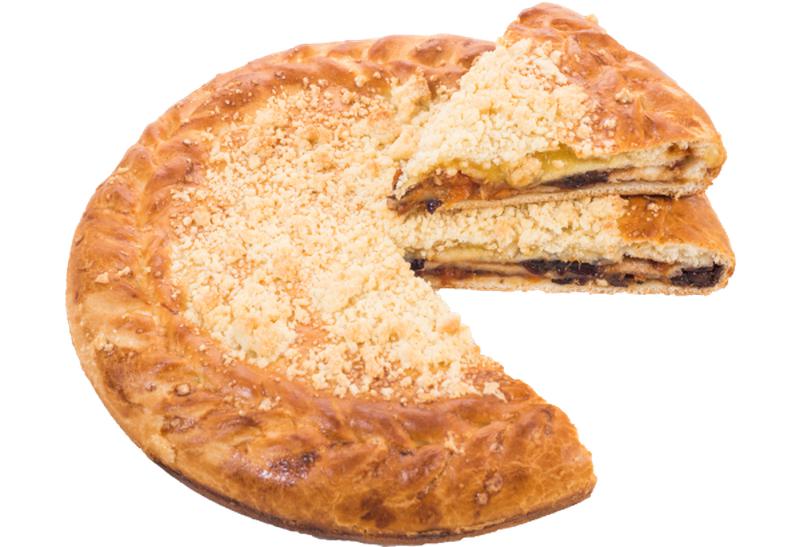 Состав: мука пшеничная в/с, маргарин, сахар, вода питьевая, начинка фрук. термост. курага, начинка фрук. термост. лимон, начинка фрук. термост. чернослив, яйцо, молоко, дрожжи прессов. ""Рекорд"", соль. Пищевая ценность в 100 г продукта: Жиры: 48,2 г, Белки: 4,4 г, Углеводы: 18,14 г, Калорийность: 523,96 ккал.