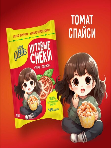 снеки нутовые Mini Mils со вк.томат спайси 50г/10шт/4бл.