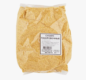 Состав: сухарная крошка (пшеничная мука в/с, дрожжи, вода, соль).Рекомендации: предназначены в основном для панировки жареных блюд из мяса, птицы, рыбы, овощей. Сохраняют сок, вкус и аромат основного продукта, дают аппетитную хрустящую золотистую корочку.
