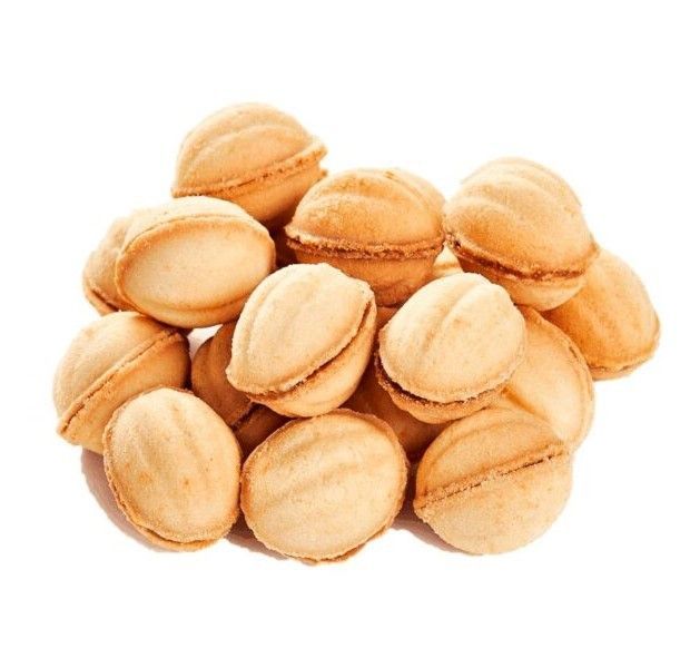 Состав: мука пшеничная в/с, маргарин, молоко сгущенное вареное, яйцо, сахар, разрыхлитель, соль. Пищевая ценность в 100 г продукта: Жиры: 12,7 г, Белки: 7,2 г, Углеводы: 59 г, Калорийность: 379,1 ккал.