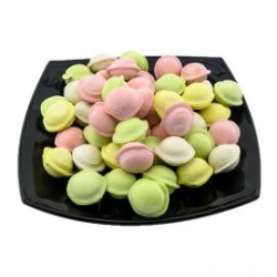 Сочные разноцветные пельмешки для детей с 3 лет. Приготовлены по-домашнему и деликатно приправлены солью и лучком.