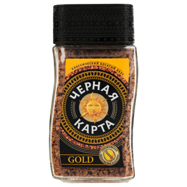 Черная Карта Gold – натуральный растворимый сублимированный кофе с особой золотистой обжаркой зёрен. Изысканный, с глубоким и сбалансированным вкусом и неповторимым богатым ароматом. Зерна, из которых делается этот кофе, согреты золотыми лучами солнца, тщательно отобраны нашими экспертами и заботливо обжарены до благородного золотистого цвета. Наши кофейные эксперты гарантируют его классический сбалансированный вкус и насыщенный аромат. С этим кофе так приятно насладиться минутой отдыха и помечтать о чем-то приятном!